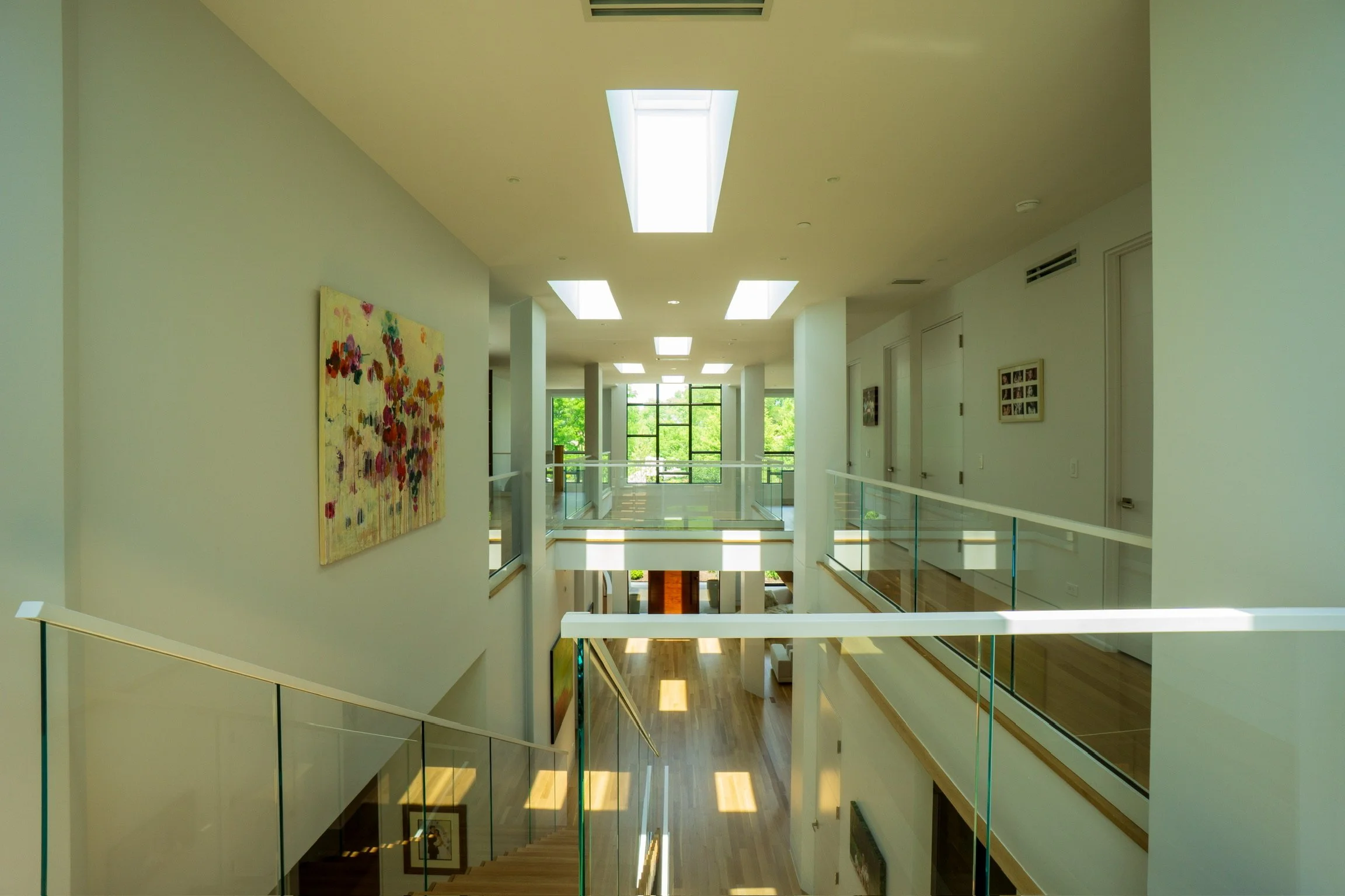 While interiors push your focus out toward the horizon, the home’s energy systems make the most of nature, too. We used high-efficiency mechanical systems and roof-mounted solar panel arrays for more sustainable living.